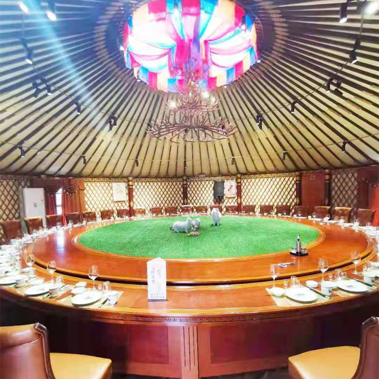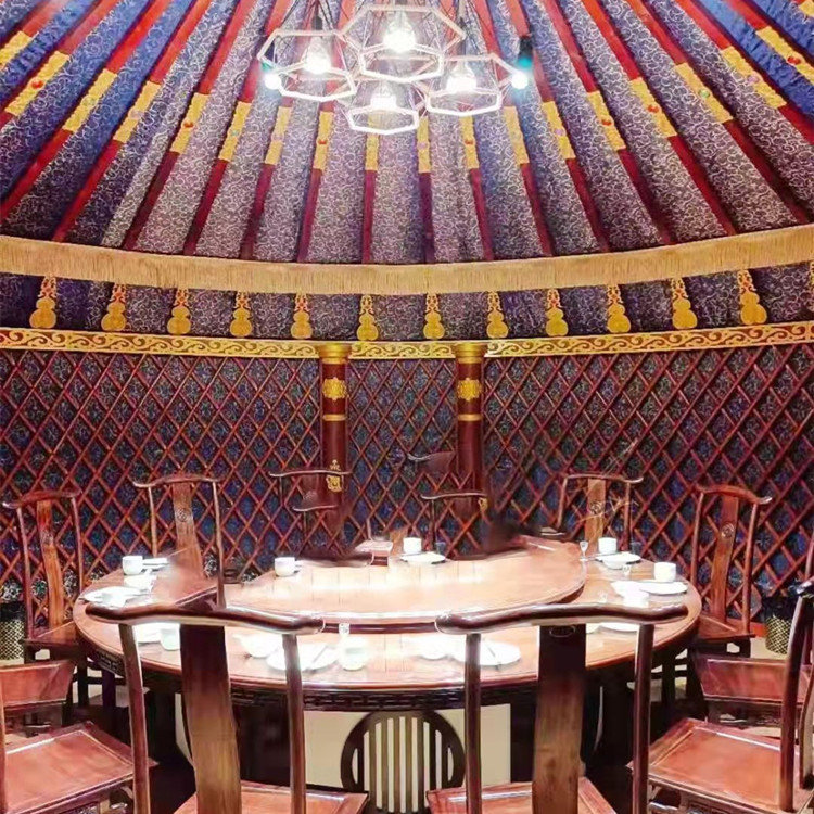 隨著時代的發(fā)展蒙古包逐漸的被商業(yè)化,比如蒙古包餐飲,蒙古包燒烤,蒙古包農(nóng)家樂等,都可以很好的體現(xiàn)我們鑫鋒受到很多商業(yè)人士喜好。豪華蒙古包工藝上采用蒙古包骨架全部木質(zhì)結(jié)構(gòu),附有雕刻工藝,堅固耐用,拆裝靈活,外形美觀大方,防寒套采用純毛毛氈和丙綸防雨套用維綸有機(jī)硅高級防水帆布制作,不但具有防腐、防雨性能,而且對骨架和防寒氈具有保護(hù)作用,產(chǎn)品既保留傳統(tǒng)民族文化特色,又具有時尚因素。