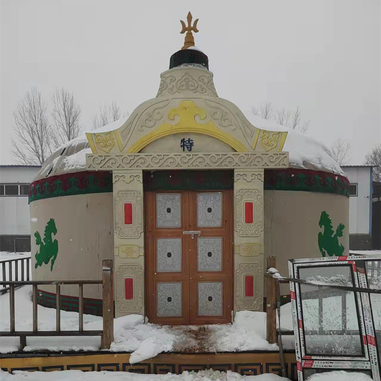 隨著時(shí)代的發(fā)展蒙古包逐漸的被商業(yè)化,比如蒙古包餐飲,蒙古包燒烤,蒙古包農(nóng)家樂等,都可以很好的體現(xiàn)我們鑫鋒受到很多商業(yè)人士喜好。豪華蒙古包工藝上采用蒙古包骨架全部木質(zhì)結(jié)構(gòu),附有雕刻工藝,堅(jiān)固耐用,拆裝靈活,外形美觀大方,防寒套采用純毛毛氈和丙綸防雨套用維綸有機(jī)硅高級防水帆布制作,不但具有防腐、防雨性能,而且對骨架和防寒氈具有保護(hù)作用,產(chǎn)品既保留傳統(tǒng)民族文化特色,又具有時(shí)尚因素。
