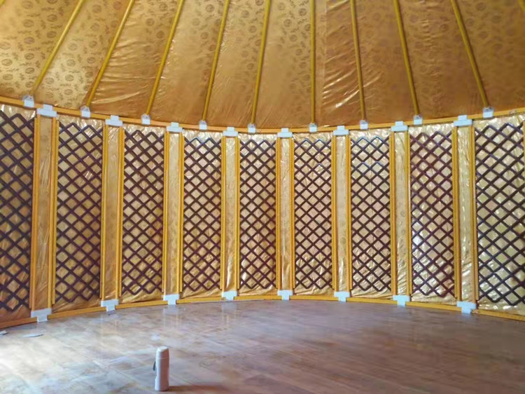 隨著時代的發(fā)展蒙古包逐漸的被商業(yè)化,比如蒙古包餐飲,蒙古包燒烤,蒙古包農(nóng)家樂等,都可以很好的體現(xiàn)我們鑫鋒受到很多商業(yè)人士喜好。豪華蒙古包工藝上采用蒙古包骨架全部木質(zhì)結(jié)構(gòu),附有雕刻工藝,堅固耐用,拆裝靈活,外形美觀大方,防寒套采用純毛毛氈和丙綸防雨套用維綸有機硅高級防水帆布制作,不但具有防腐、防雨性能,而且對骨架和防寒氈具有保護作用,產(chǎn)品既保留傳統(tǒng)民族文化特色,又具有時尚因素。